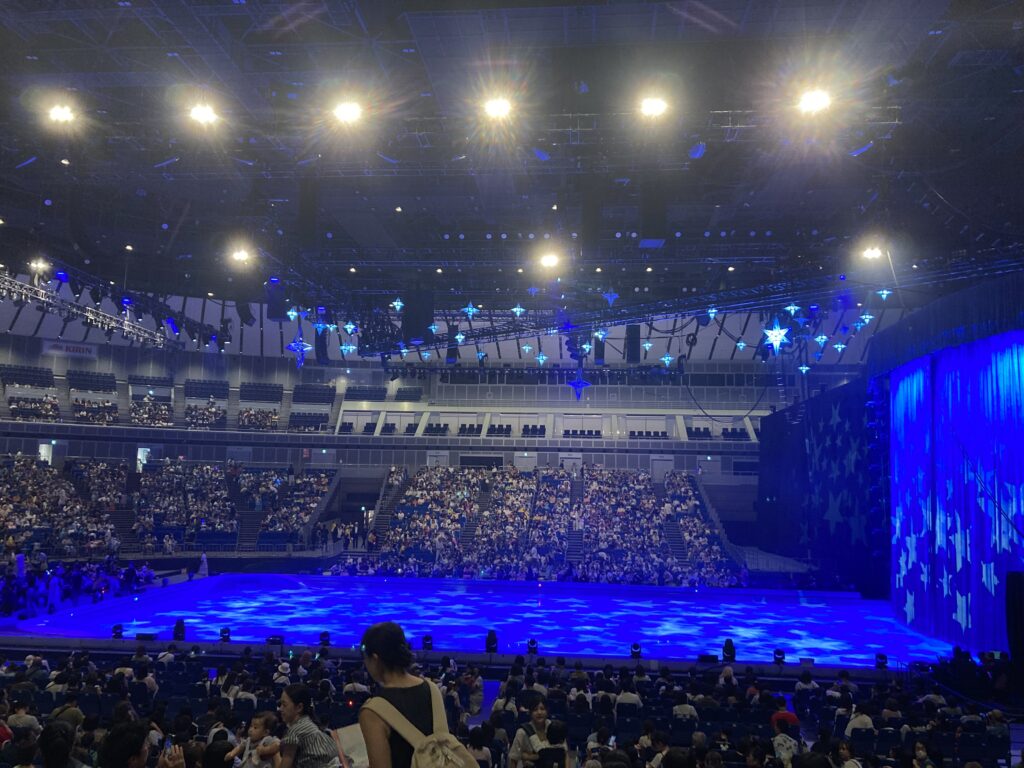 今年のトライアル席は、なんとアリーナ席でした!!真横から見る形で、少し正面の映像は見づらかったですが、キャラクターは近くで感じることができました。